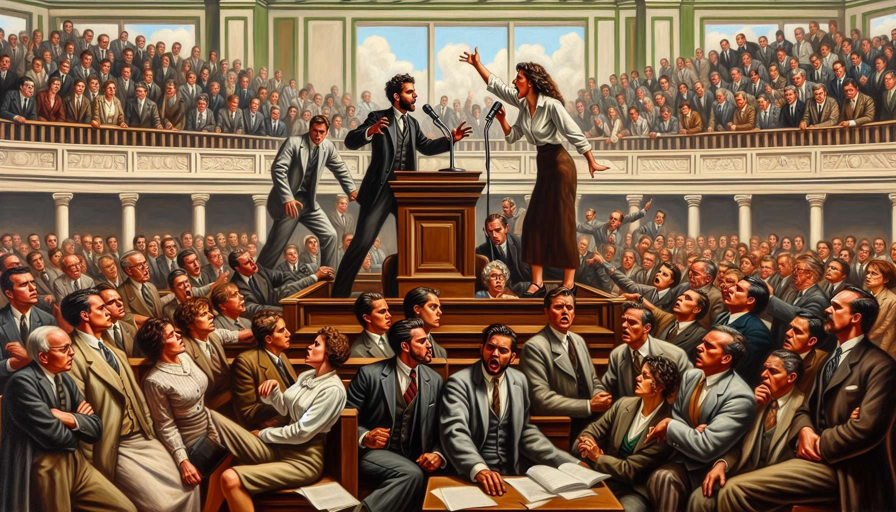 US Congress members fight with deadly weapons in Congress before 2035.