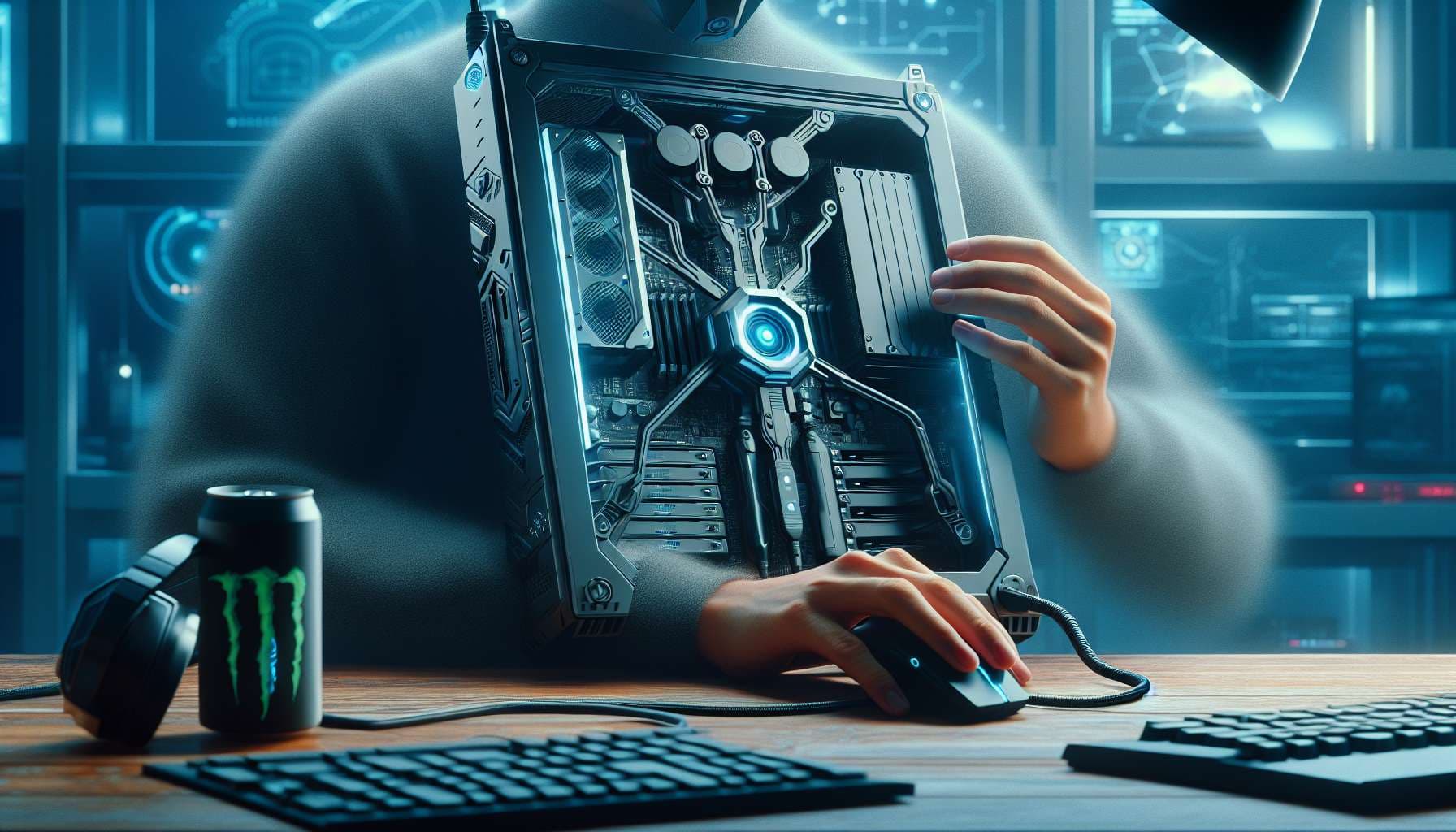 A gaming PC, no less than half as powerful as a contemporary (as of release) thousand dollar full sized desktop gaming PC, that's intended to be worn, EG, like (or inside of) a backpack, or a toolbelt, at the waist.